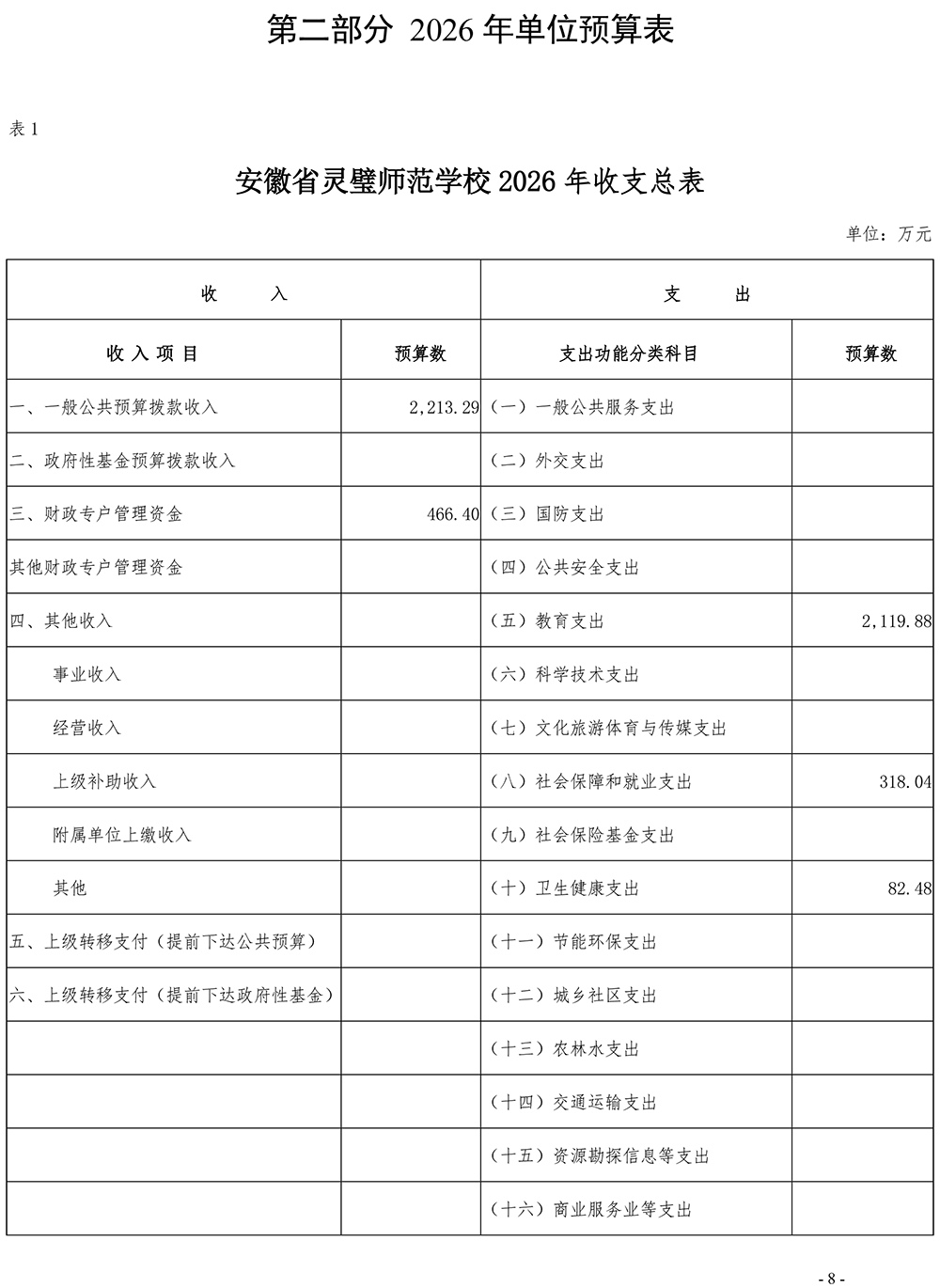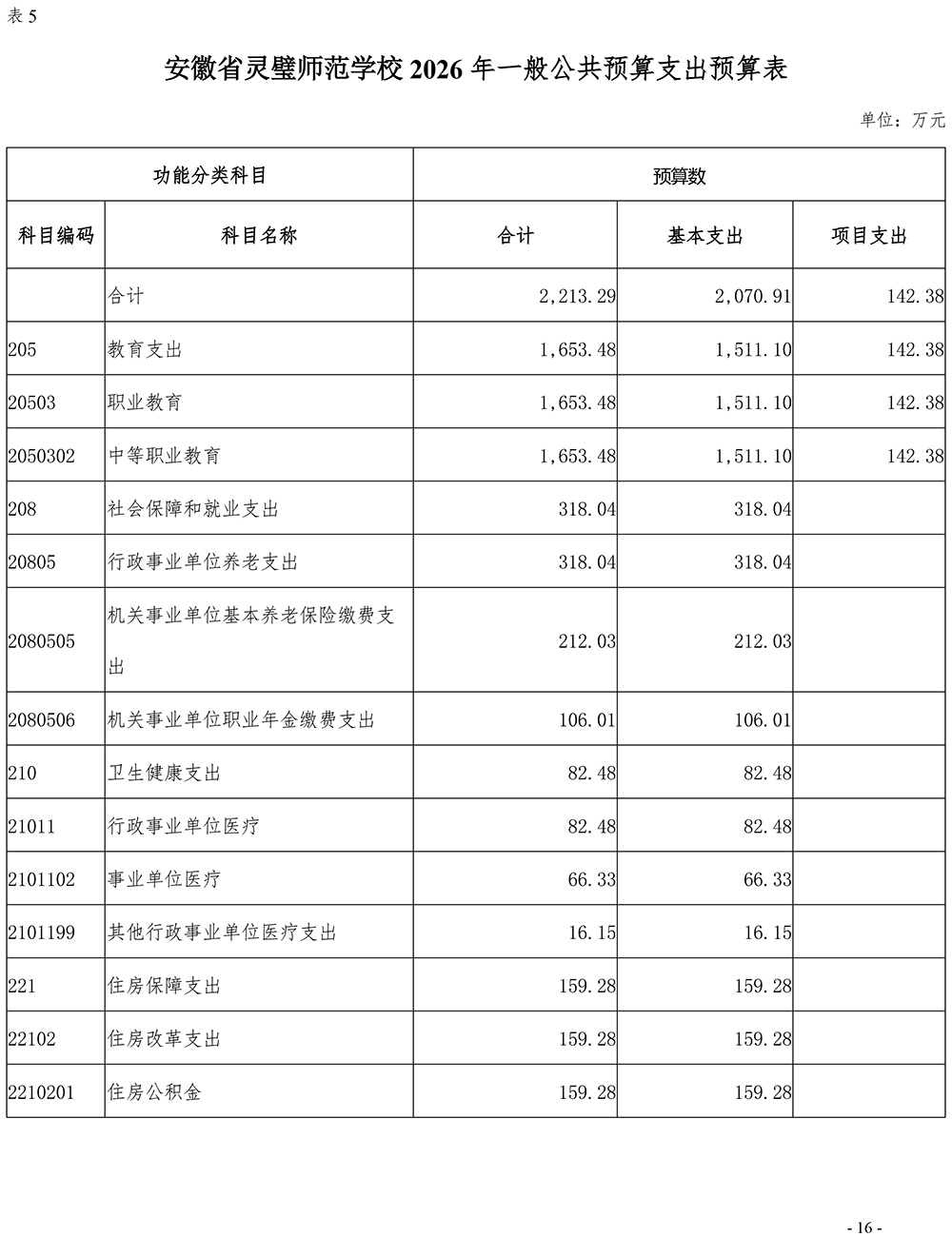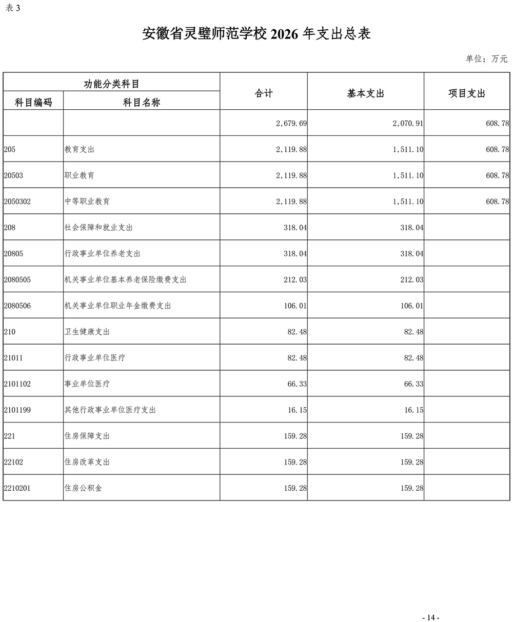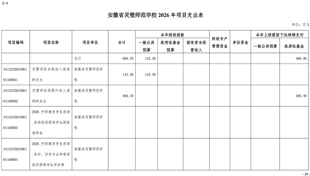 安徽省灵璧师范学校2026年单位预算